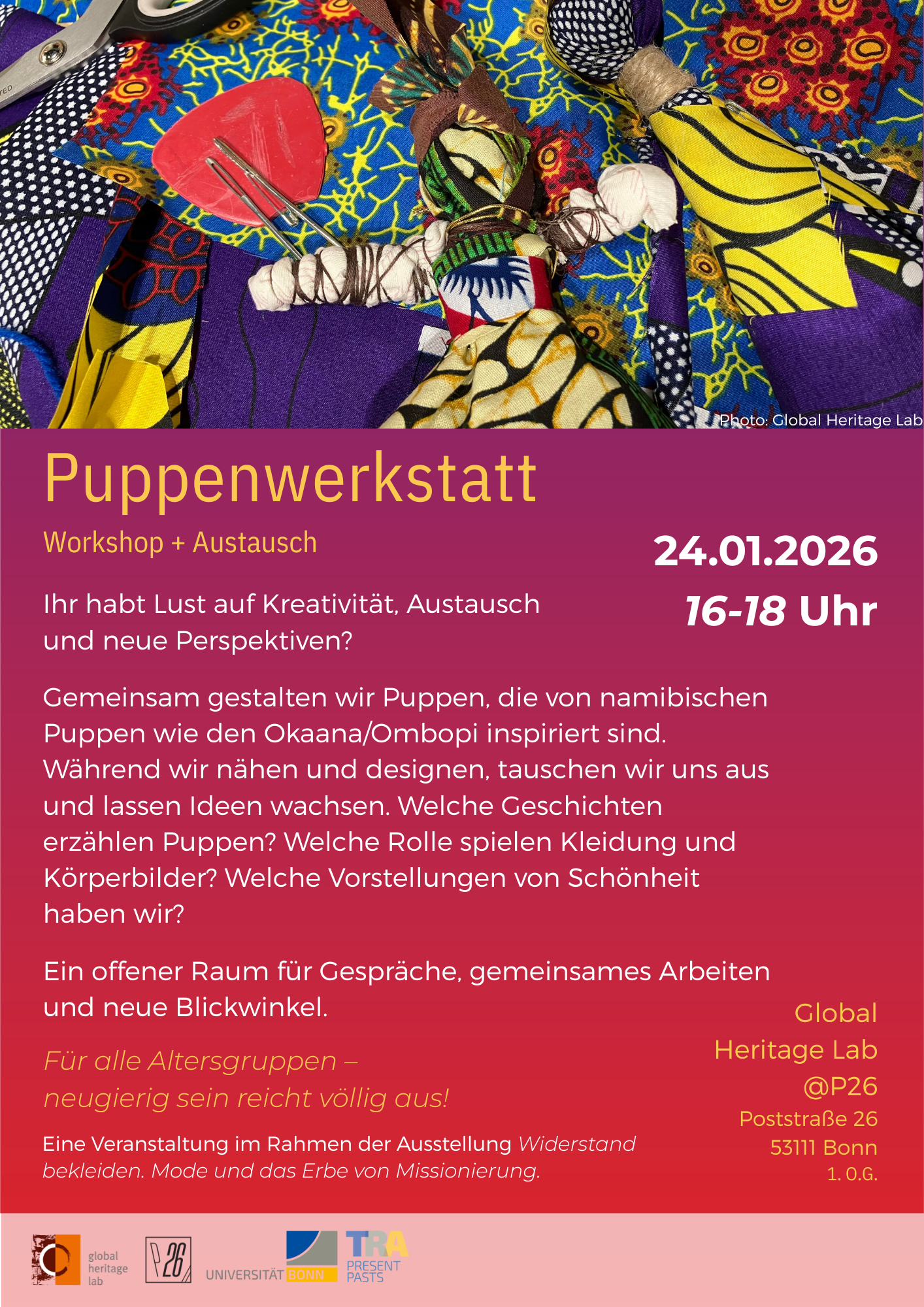 Ihr habt Lust auf Kreativität, Austausch und neue Perspektiven? Dann kommt zur Puppenwerkstatt des Global Heritage Lab!