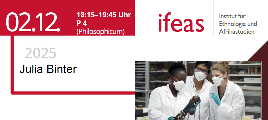 The implicated researcher: Shifting positionalities in collaborative research and restitution projects On 2 December 2025, Jun-Prof. Dr. Julia Binter will give a talk titled “The implicated researcher: Shifting positionalities in collaborative research and restitution projects.”Taking the collaborative research, exhibition and restitution project ‘Confronting Colonial Pasts, Envisioning Creative Futures’ on the collections from Namibia at the […]
