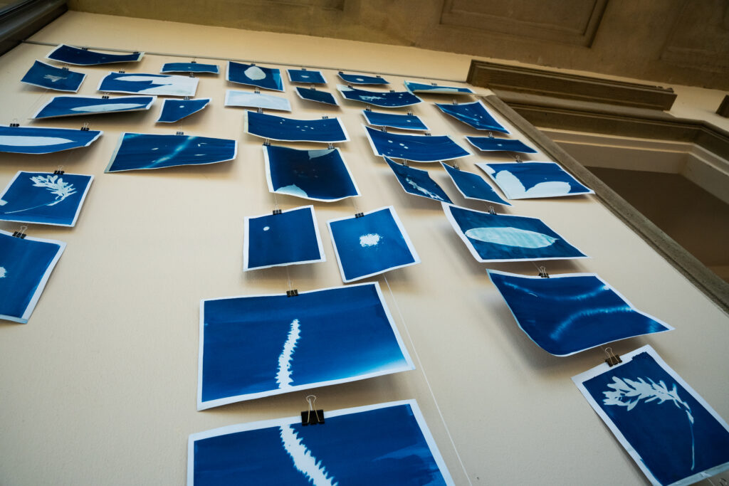 In sechs Zines – handgefertigten, vielschichtigen Faltblättern – entfalten sich Geschichten über Moos, Monstera, Pewen, Protea Afra, die Grasnelke und den Kakaobaum. Sie erzählen Geschichten von Migration, Widerstand, Wahrnehmung und Namensgebung. Sichtbar werden sie in analogen und animierten Cyanotypien, die durch Augmented Reality vor Ort erlebbar sind.