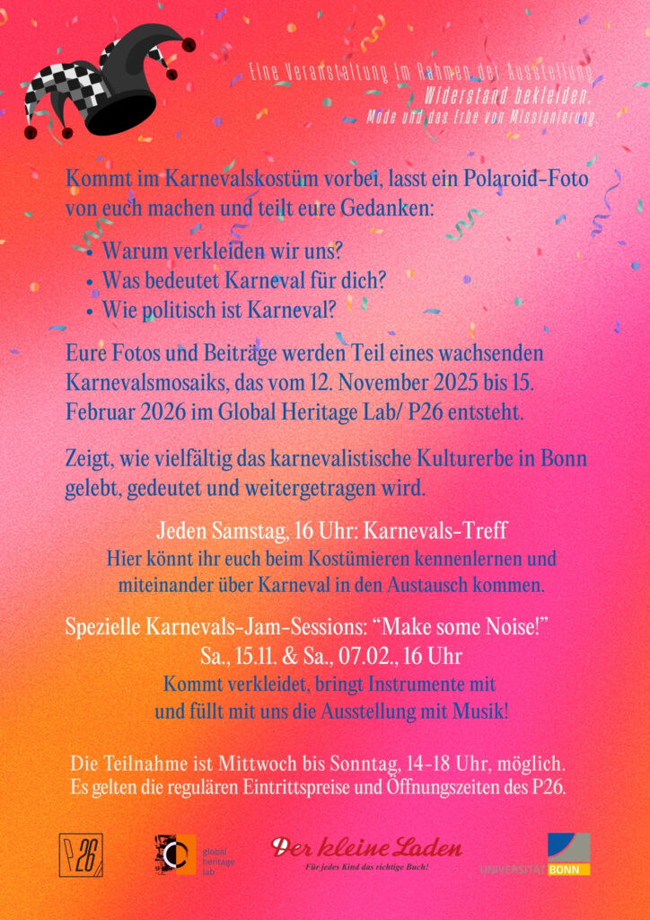 Within this context, Carnival opens a global perspective. From the Black Atlantic to the Rhineland, missionary histories and their afterlives continue to inform festive cultures, aesthetics, and practices of resistance.